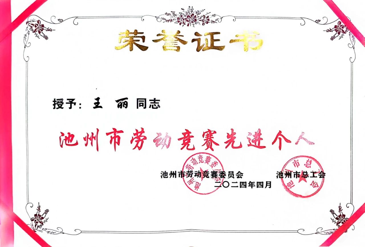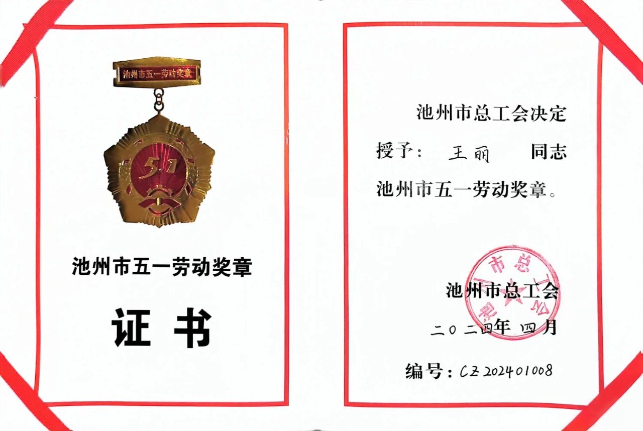 建功十四五●奮進(jìn)新征程 | 祝賀安徽?qǐng)蛩粗悄芤m業(yè)有限公司王麗同志被授予“池州市勞動(dòng)競(jìng)賽先進(jìn)個(gè)人”、“池州市五一勞動(dòng)獎(jiǎng)?wù)隆?/h1>
